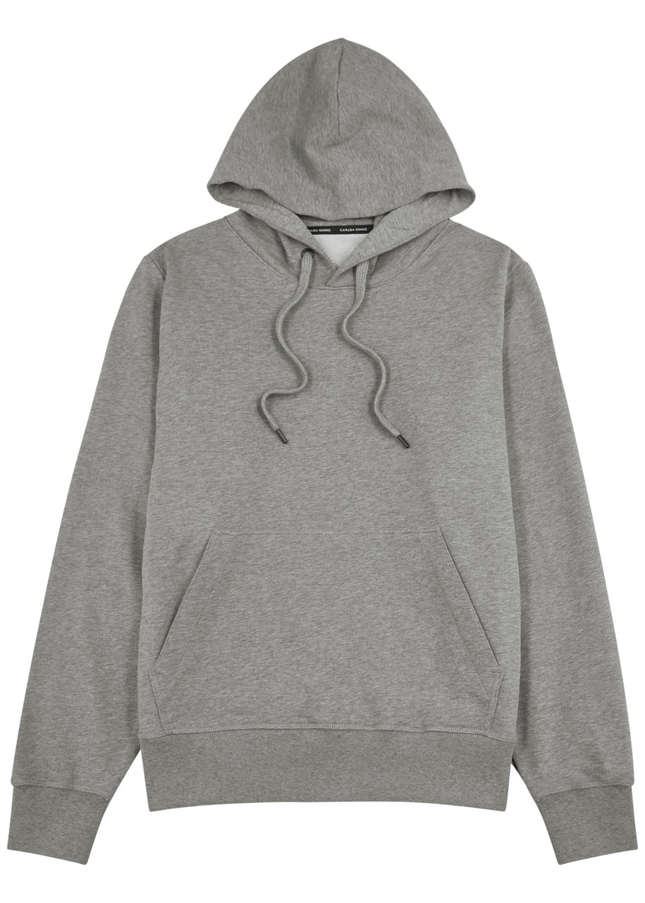 INFO & CARE - Canada Goose cotton sweatshirt - Drawstring hood, dropped shoulders, embroidered designer plaque at sleeve, pouch pocket, ribbed trims - Slips on - 100% cotton - Machine wash SIZE & FIT - Length shoulder to hem: 27.5 inches/ 70cm - Midweight - Regular fit - Model is 6'2"/ 188cm, chest size 38 inches and wears a size medium