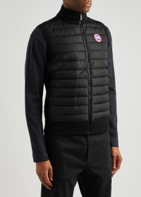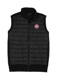 STYLE NOTES Canada Goose’s coveted Hybridge family expands with this gilet that’s crafted from wool and padded shell. Primed for layering and active lifestyles, this slim style is quilted with goose down at the front for guaranteed warmth and is topped with a high neck and the iconic logo plaque at the chest. INFO & CARE - Canada Goose wool gilet - High neck, quilted shell front, designer plaque, waffle-knit panels, two concealed zip-fastening pockets, ribbed trims - Zip-fastening through front - 100% wool; fabric 2: 100% polyamide; fill: 80% down, 20% feathers - Dry clean SIZE & FIT - Length shoulder to hem: 26 inches/ 66cm - Midweight - Slim fit - Model is 6'3"/ 191cm, chest size 38 inches and wears a size medium