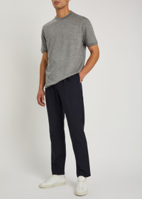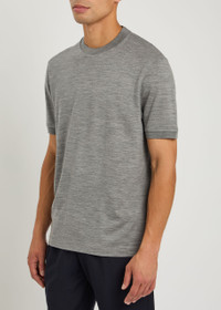 Info & Care Canali wool T-shirt Melange, crew-neck, side splits, logo embroidery at back neck,;ribbed trims Slips on 100% virgin wool Machine wash Size & Fit Length shoulder to hem: 27 inches/ 68.5cm Midweight Relaxed fit Model is 6'1"/ 185cm, chest size 36 inches and wears a size;IT48
