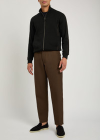 Info & Care Canali wool;track jacket High-neck, front slip pockets, designer plaque back, contrasting piped trims, ribbed trims Two-way zip fastening through front 100% wool Hand wash Coordinating items available Size & Fit Length shoulder to hem: 26 inches/ 66cm Midweight Regular fit, straight cut Model is 6'1"/ 185cm, chest size 36 inches and wears a size IT48