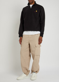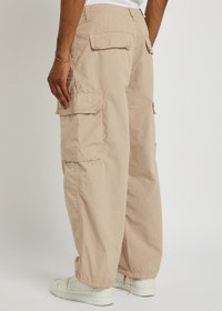 Info & Care Carhartt WIP cotton-poplin cargo trousers Belt loops, concealed drawstring at waist, side slant pockets, dropped crotch, two press-stud fastening side flap pockets, designer plaque at side, two press-stud fastening;back;flap pockets, concealed drawstring-fastening cuffs Partially concealed zip and button fastenings at front 100% cotton Machine wash Size & Fit Inside leg length: 30 inches/ 76.5cm Midweight Relaxed fit, straight-leg cut Model is 6'1"/ 185cm and wears a size;W32