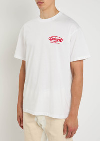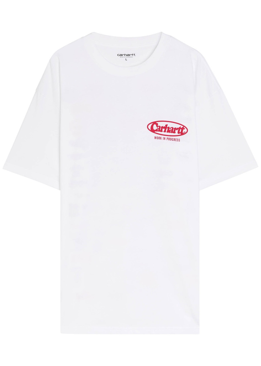 Info & Care Carhartt WIP cotton T-shirt Ribbed crew-neck, logo print at chest and back Slips on 100% organic cotton Machine wash Size & Fit Length shoulder to hem: 30 inches/ 76cm Midweight Loose relaxed fit Model is 6'3"/ 191cm, chest size 34.5 inches and wears a size medium