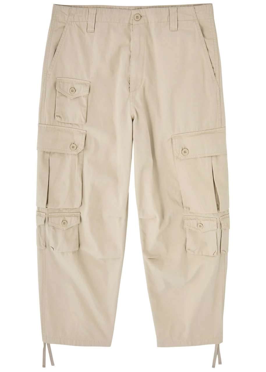 Info & Care Carhartt WIP cotton cargo trousers Belt loops, concealed drawstring at waist, side slip pockets, seven button-fastening front flap pockets, darted knees, two back slit pockets, concealed drawstring fastening cuffs Partially concealed zip and button fastenings at front 100% cotton Machine wash Size & Fit Inside leg length: 27 inches/ 68.5cm Midweight Straight-leg cut Model is 6'1"/ 185cm and wears a size W32
