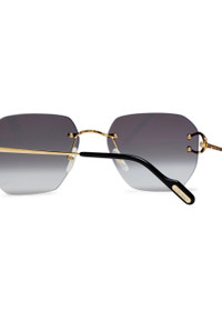 Info & Care Cartier metal sunglasses Graduated designer-engraved lenses, designer plaque at temples and tips, acetate tips 100% UV protection Presented in a designer-stamped box with a hard case and cleaning cloth Size & Fit Frame width: 14cm Frame height: 5cm