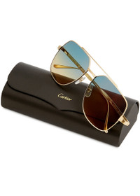 Info & Care Cartier gold-tone sunglasses Graduated blue and yellow lenses brushed bridge and temples gold-tone screws designer-engraved arms 100% UV protection Presented in a designer-stamped box with a hard case and cleaning cloth Size & Fit Frame width: 14cm Frame height: 5cm