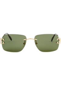Info & Care Cartier gold-tone sunglasses Green;lenses rimless frame signature C detail at temples dark tortoiseshell acetate tips 100% UV protection Presented in a designer-stamped box with a hard case and cleaning cloth Size & Fit Frame width: 14cm Frame height: 4cm