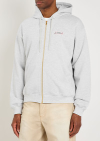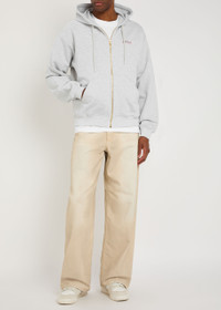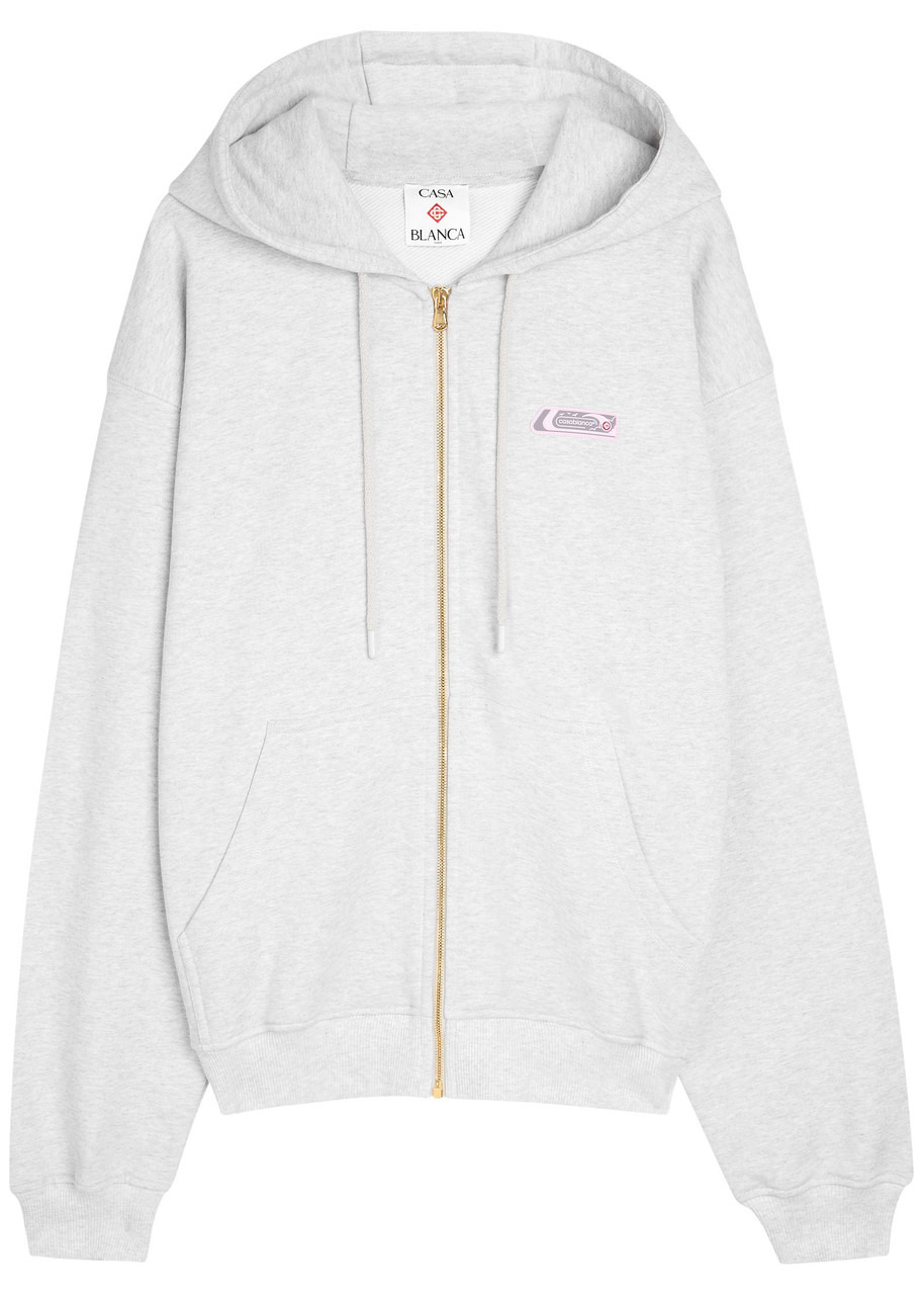 Info & Care Casablanca cotton sweatshirt; Drawstring hood, dropped shoulders, rubberised logo applique at chest, front slip pockets, ribbed trims; Zip fastening through front 100% organic cotton; Machine wash; Size & Fit Length shoulder to hem: 26 inches/ 66cm Midweight Relaxed fit Model is 6'2"/ 188cm, chest size 38.5 inches and wears a size medium