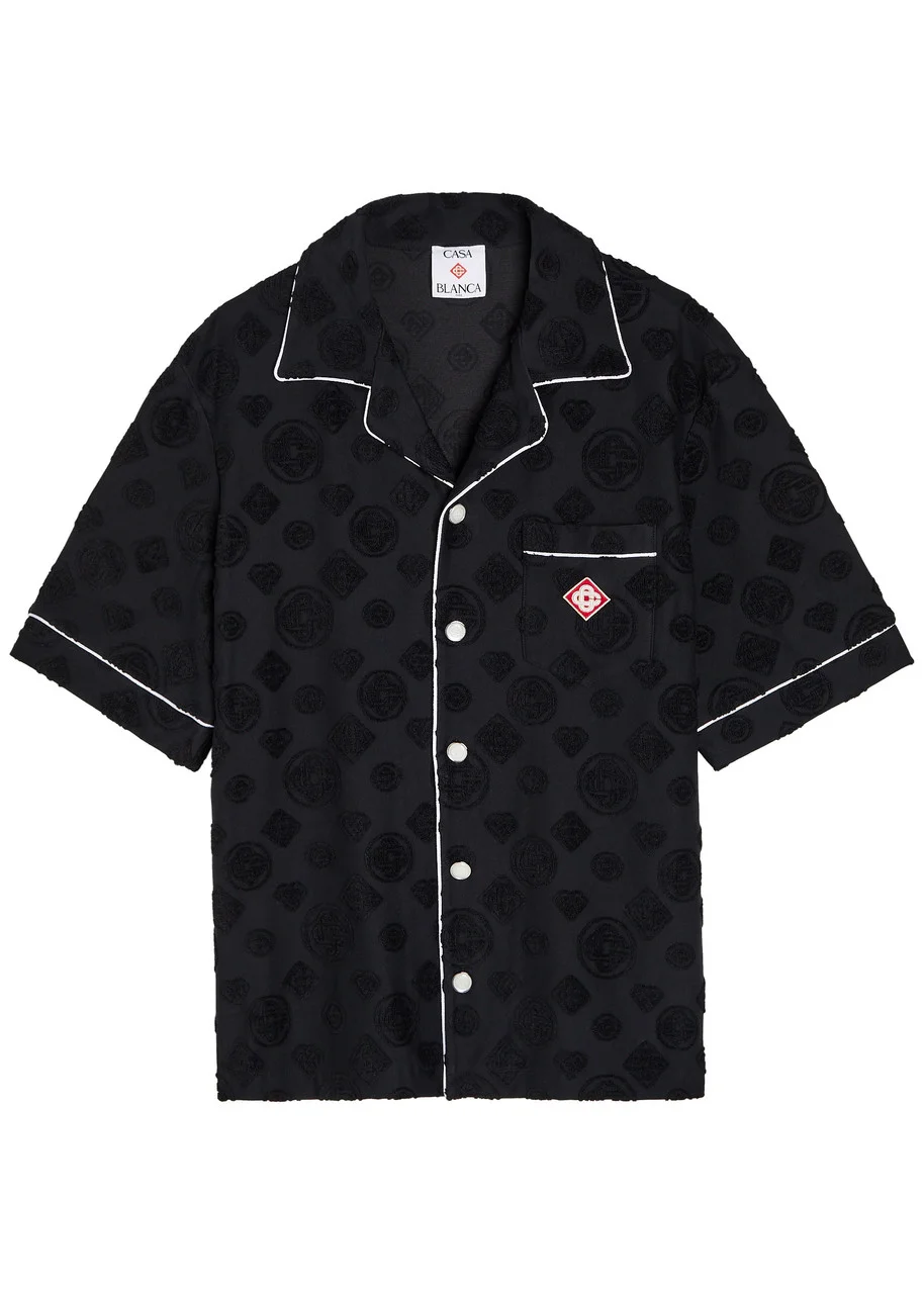 Info & Care Casablanca terry;shirt Flocked logo-monogrammed jacquard, camp collar, logo applique at chest patch pocket,;contrasting trims Button fastenings through front 81% cotton, 17% polyamide, 2% elastane Machine wash Coordinating items available Size & Fit Length shoulder to hem: 28 inches/ 71cm Midweight Regular fit Model is 6'1"/ 185cm, chest size 38 inches and wears a size medium