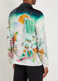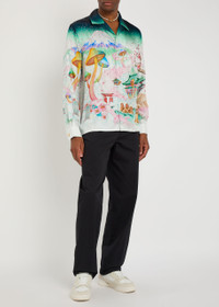 Info & Care Casablanca silk-twill shirt Printed, button-fastening camp collar, button-fastening cuffs with pleats, chest patch pocket, logo print details, enamelled buttons Concealed button fastenings through front 100% silk Dry clean Size & Fit Length shoulder to hem: 27 inches/ 68.5cm Midweight Regular fit Model is 6'2"/ 188cm, chest size 38.5 inches and wears a size medium