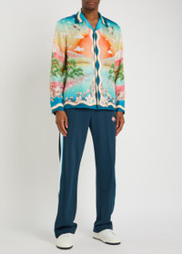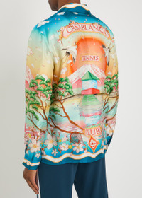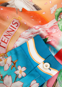Info & Care Casablanca silk-twill shirt Printed, button-fastening camp collar, dropped shoulders, button-fastening cuffs with pleats, logo print and enamelled details,;wavy;print trims Concealed button fastenings through front 100% silk Dry clean Size & Fit Length shoulder to hem: 30 inches/ 76.5cm Midweight; Boxy, loose;fit Model is 6'2"/ 188cm, chest size 38 inches and wears a size medium
