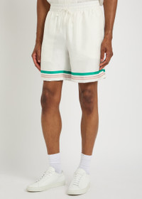 Info & Care Casablanca silk-twill shorts Elasticated drawstring waistband, two slip pockets, striped print trims, logo-printed back patch pocket, fully lined Pull on; 100% silk; Dry clean; Coordinating items available Size & Fit Length waist to hem:;20 inches/ 51.5cm Midweight; Relaxed fit; Model is 6'2"/ 188cm and wears a size medium