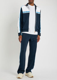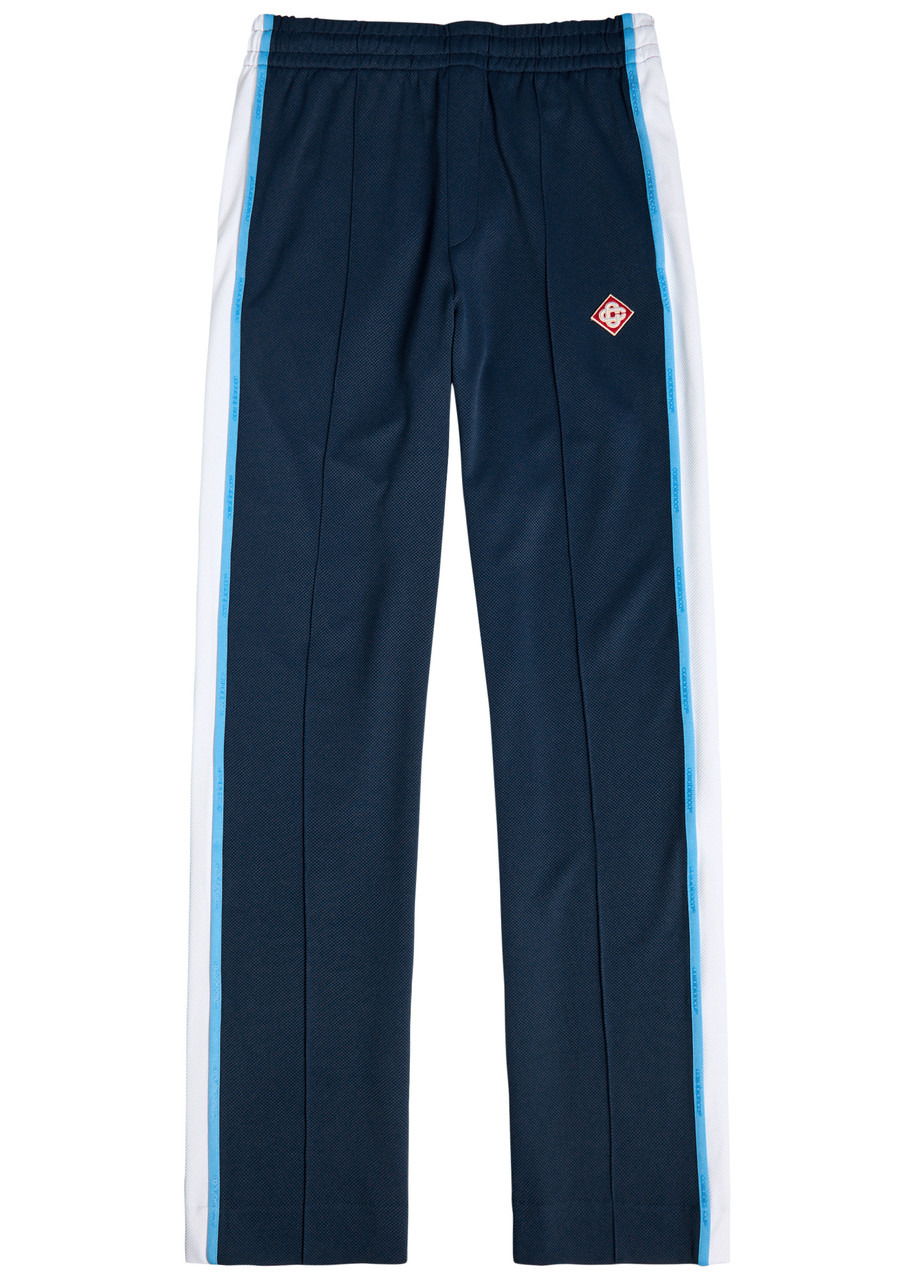 Info & Care Casablanca jersey trousers Concealed drawstring at elasticated waistband, faux fly, zip-fastening side slip pockets, pintuck through legs, logo applique, designer-stamped contrasting stripe inserts through sides, logo embroidery at back, zip-fastening back slit pocket, textured finish Pull on 51% polyamide, 46% viscose, 3% elastane; Dry clean; Coordinating items available; Size & Fit Inside leg length: 33 inches/ 84cm Midweight Loose fit, straight-leg cut Model is 6'2"/ 188cm;and wears a size medium
