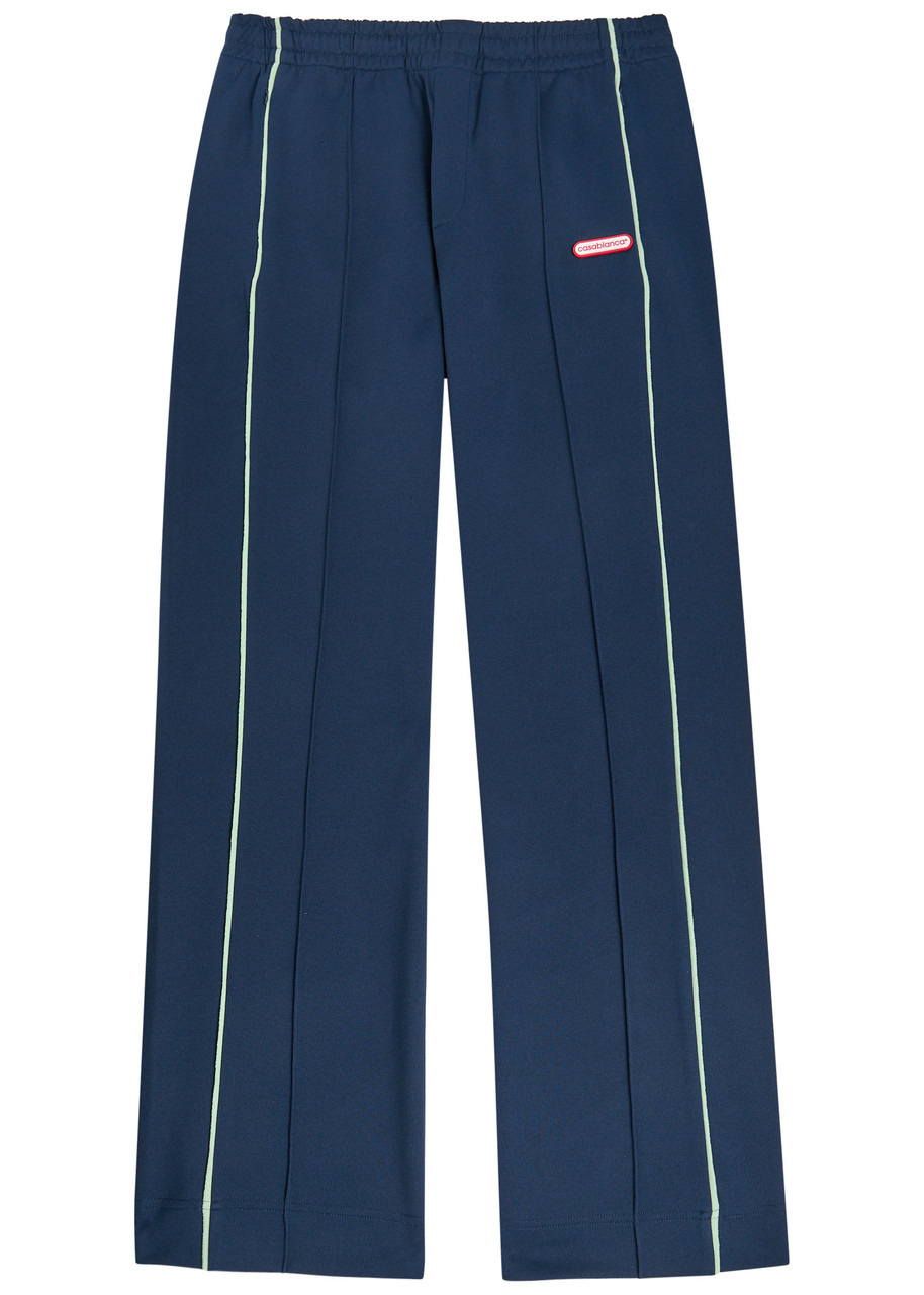 Info & Care Casablanca jersey track pants Concealed drawstring at elasticated waistband, faux fly, brushed piped trims through sides, zip-fastening side slip pockets, pintuck through legs, rubberised logo applique, zip-fastening back slit pocket Pull on 54% polyester, 46% cotton Dry clean; Size & Fit Inside leg length: 32.5 inches/ 82.5cm Midweight Straight-leg cut Model is 6'2"/ 188cm and wears a size medium