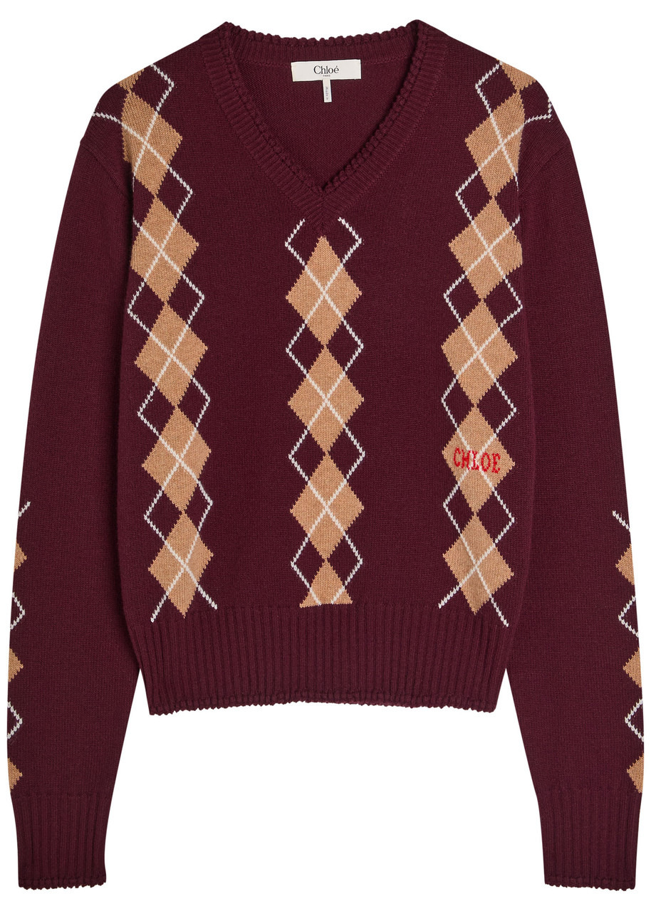 Chloe Argyle-intarsia Wool and Cashmere-blend Jumper