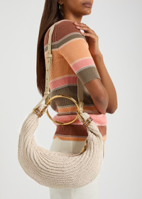 Info & Care Chloe crochet top handle bag Detachable metal hoop top handle, detachable adjustable press-stud fastening leather shoulder strap, two-tone metal hardware, internal slip pocket, suede lining Zip fastening across top Size & Fit Width: 12 inches/ 30.5cm Height: 5 inches/ 12.5cm Depth: 4 inches/ 10cm Top handle drop: 3.5 inches/ 9cm Min. shoulder strap drop: 13.5 inches/ 34cm Max. shoulder strap drop: 16 inches/ 40.5cm nhn;