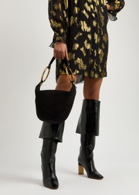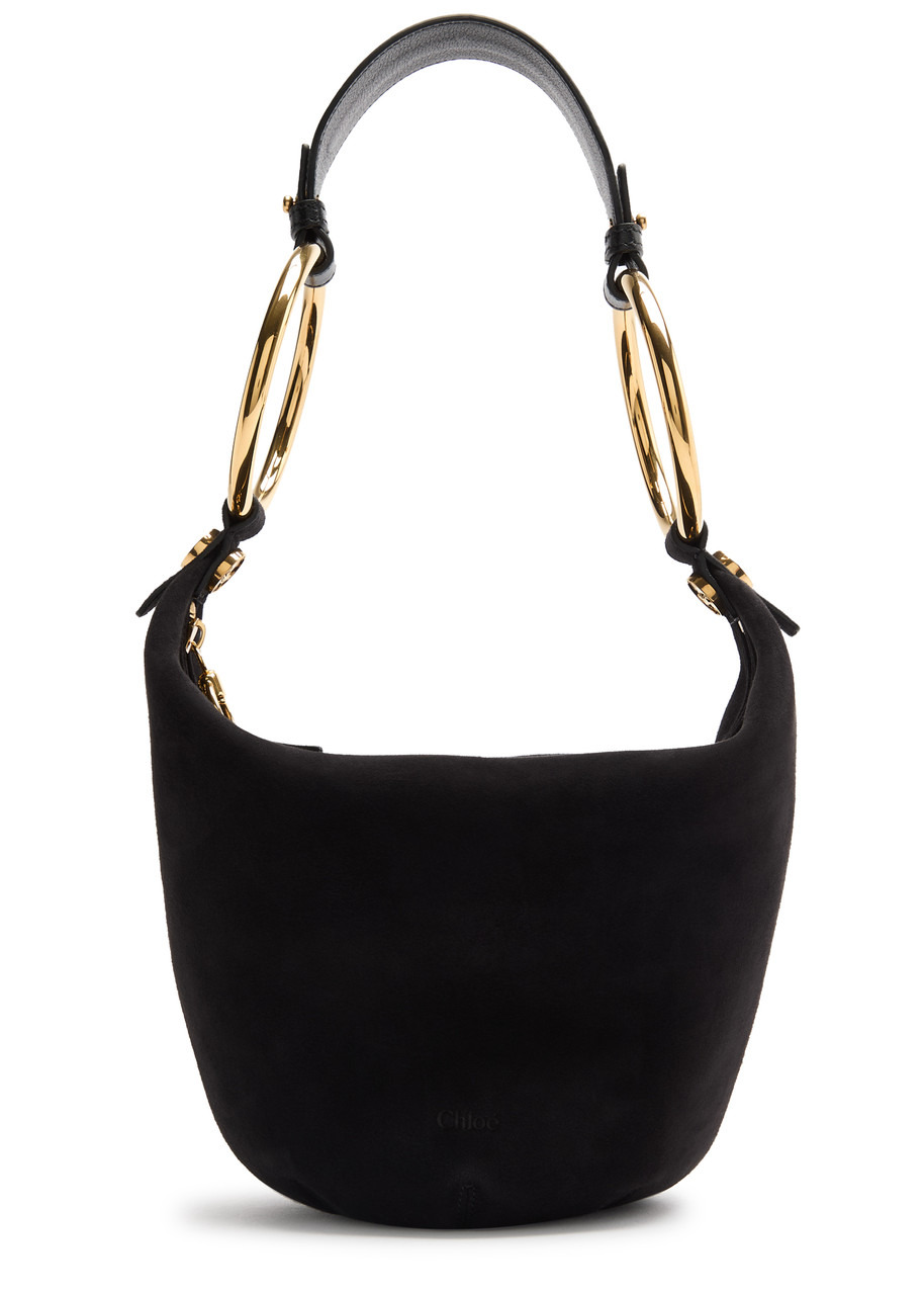 Info & Care Chloe;suede shoulder bag Leather and metal shoulder strap with detachable panel, two;metal hoop top handles, debossed logo stamp, designer-engraved hardware, internal card slot, fully lined Zip-fastening across top Size & Fit Width: 6 inches/ 15cm; 2: 10 inches/ 25.5cm Height: 7 inches/ 17.5cm Depth: 6 inches/ 15cm Shoulder strap drop: 10 inches/ 25.5cm Top handle drop: 3.5 inches/ 9cm