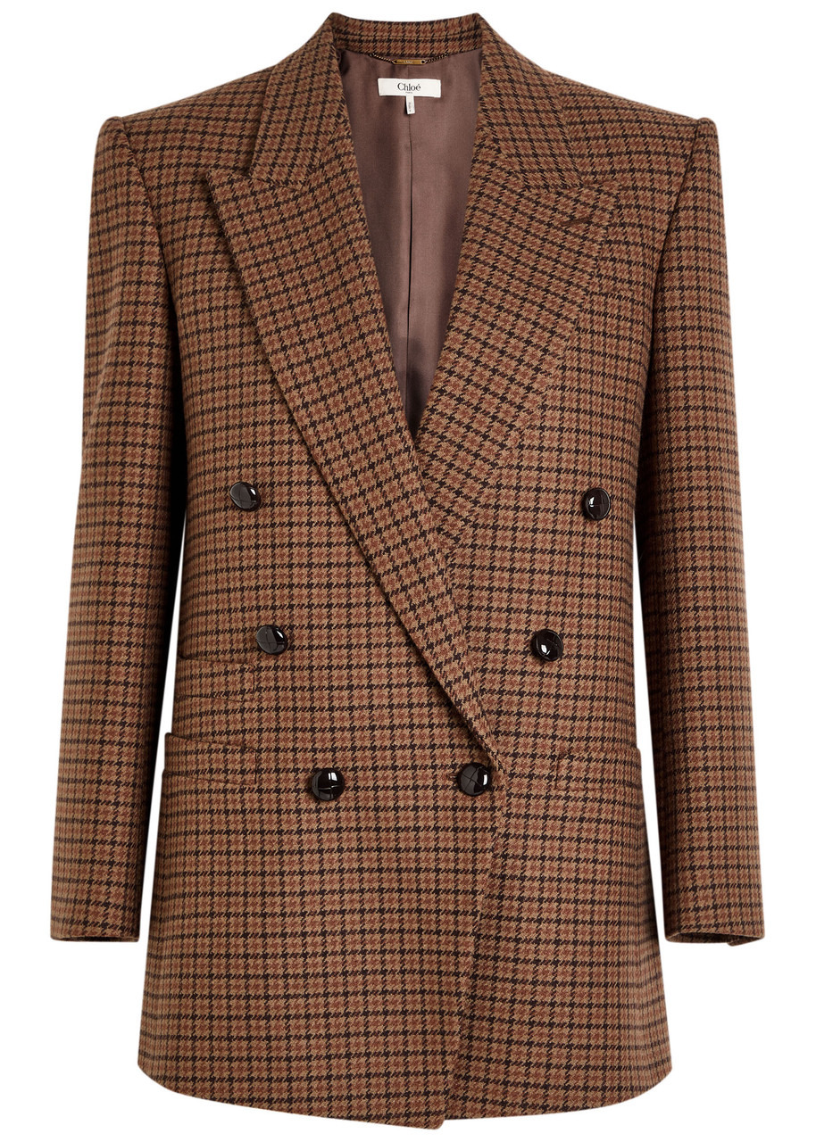 Info & Care Chloe wool-blend blazer Checked, peaked lapels, padded shoulders, button-fastening cuffs, darts through waist, two front slit pockets, two back vents, internal button-fastening pocket, fully lined Double-breasted button fastenings at front 85% virgin wool, 1% polyamide; lining: 100% silk Dry clean Size & Fit Length shoulder to hem: 30 inches/ 76.5cm Midweight Designed to be worn oversized Model is 5'9"/ 175cm and wears a size;FR36