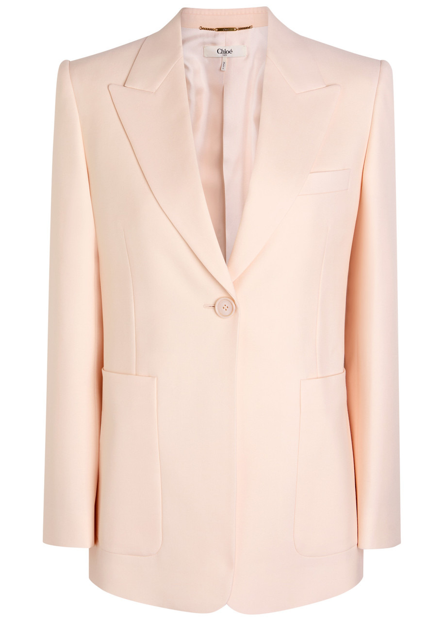 Info & Care Chloe wool;blazer Peaked lapels, padded shoulders, faux button-fastening cuffs, darts through waist, two front patch pockets, back vent, internal button-fastening pocket, internal slit pocket, fully lined Button fastening at front 100% virgin wool; buttons: 100% water buffalo horn; lining: 100% silk Dry clean Size & Fit Length shoulder to hem: 27 inches/ 68.5cm Midweight Regular fit, tapered at waist Model is 5'9"/ 175cm and wears a size;FR36