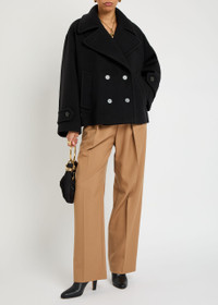 Info & Care Chloe wool-blend jacket Notched lapels, detachable button-fastening neck tab, dropped shoulders, adjustable button-fastening cuffs, side slip pockets, fully lined Double-breasted button fastenings through front; 80% virgin wool, 20% polyamide; lining: 62% viscose, 38% cotton; buttons: 100% water buffalo horn Dry clean Size & Fit Length shoulder to hem: 25 inches/ 63.5cm Heavyweight Relaxed, boxy fit Oversized style Model is 5'10"/ 178cm and wears a size small