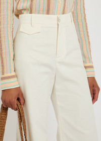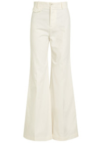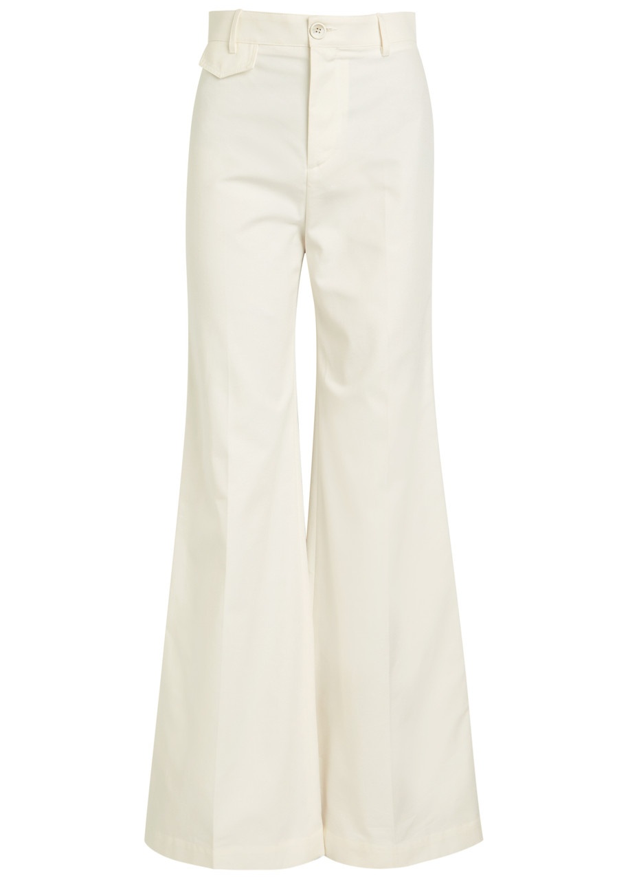 Info & Care Chloe cotton-canvas trousers Belt loops, faux front flap pocket, pressed crease through legs, two back slit pockets Concealed zip and button fastening at front; 100% cotton; Dry clean; Size & Fit Inside leg length: 33 inches/ 85cm Midweight; Flared-leg cut Model is 5'9"/ 175cm and wears a size FR36