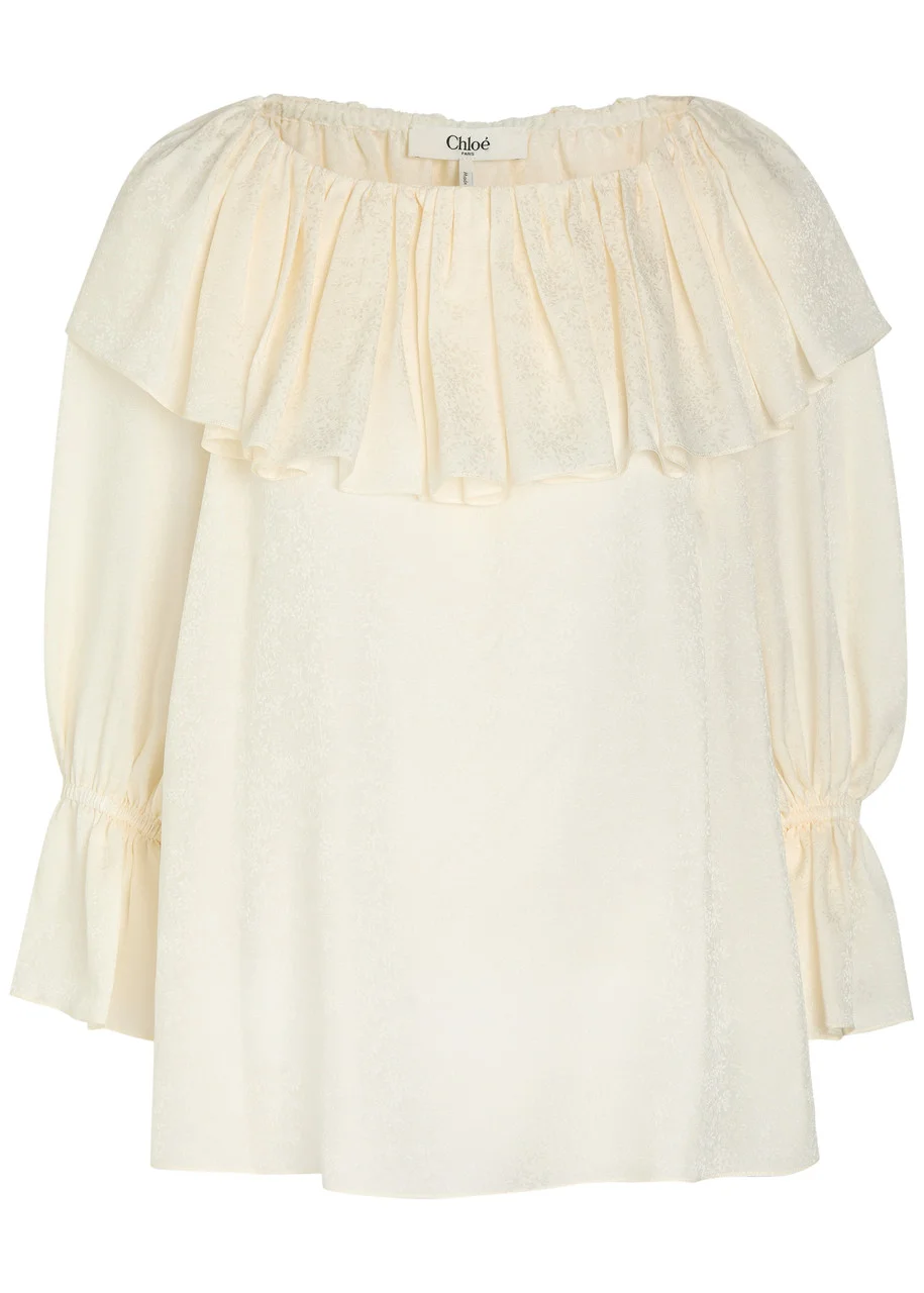 Chloe Floral Jacquard Ruffled Silk Blouse