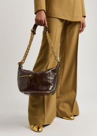 Info & Care Chloe glossed leather camera bag Layered chain and leather shoulder strap, zip-fastening side pocket, debossed logo, feet, internal slip pocket, fully lined Zip-fastening across top Size & Fit Width: 9 inches/ 22.5cm Height: 7 inches/ 17.5cm Depth: 8 inches/ 20cm Shoulder strap drop: 14.5 inches/ 37cm