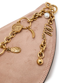 Info & Care Chloe suede shoulder bag Chain shoulder strap with hanging pendants, debossed logo, fully lined Zip fastening across top Size & Fit Width: 16 inches/ 40.5cm Height: 7 inches/ 18cm Depth: 0.5 inch/ 1cm Shoulder strap;drop: 18.5 inches/ 47cm