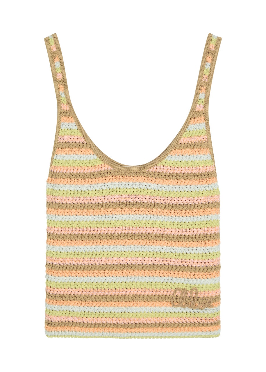 Info & Care Chloe knitted tank; Striped, scoop-neck, embroidered logo, ribbed trims; Slips on 100% cotton Machine wash Size & Fit Length shoulder to hem: 20 inches/ 50.5cm Midweight Cropped fit Model is 5'9"/ 175cm and wears a size small
