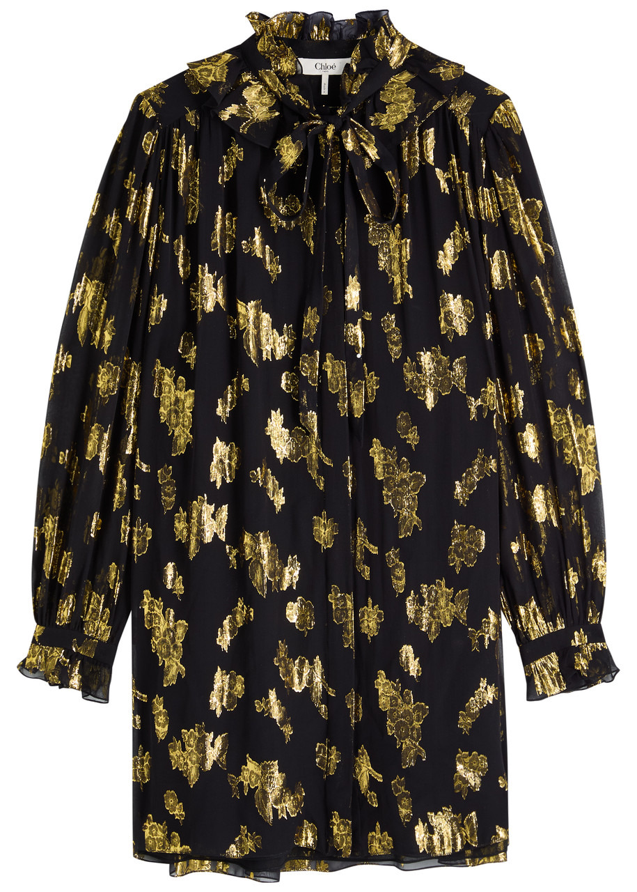 Chloe Metallic Floral-jacquard Silk-blend Mini Dress