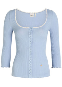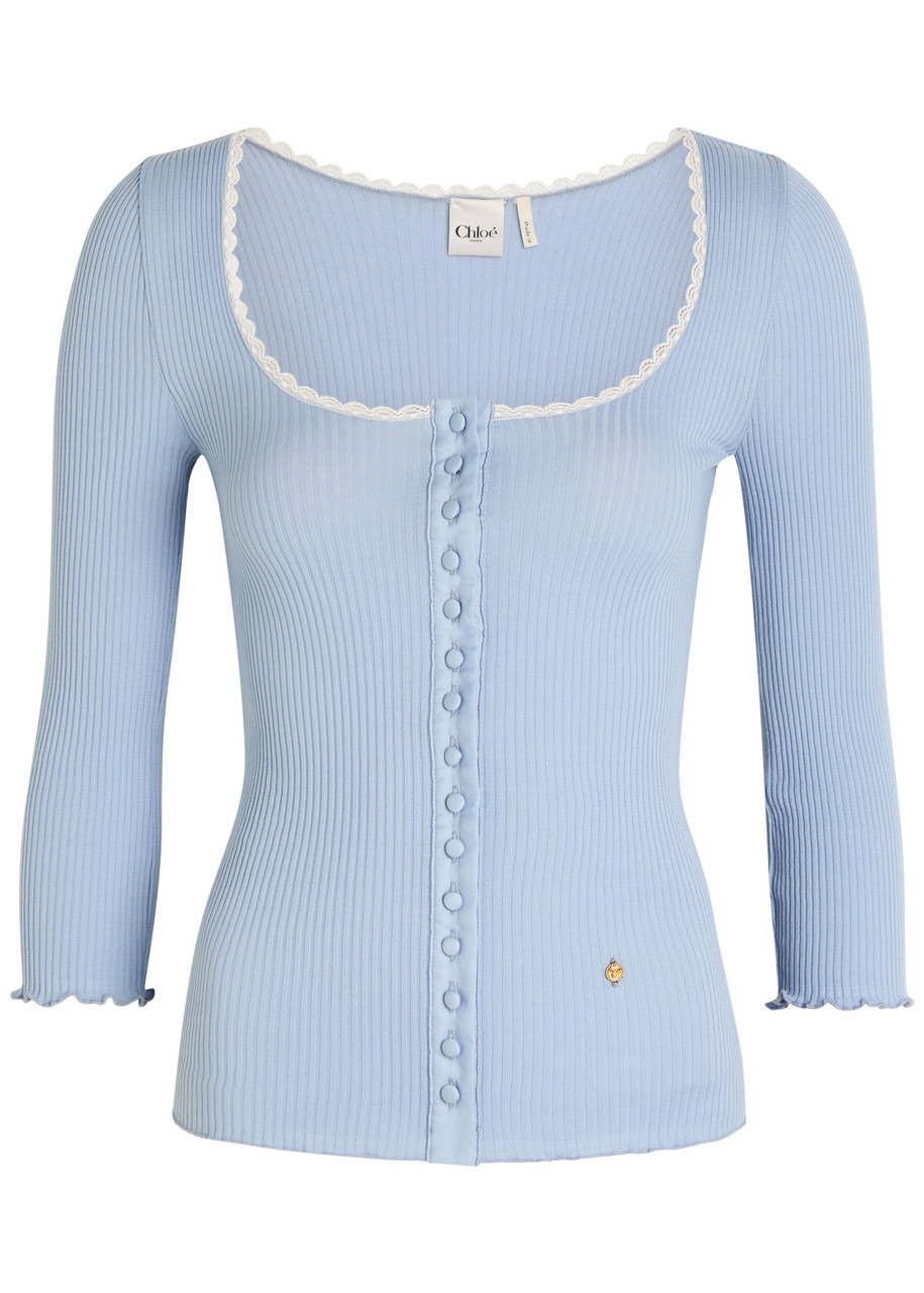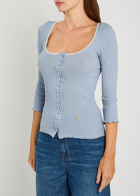 Info & Care Chloe cotton-knit cardigan Ribbed, scoop-neck with picot lace trim, designer plaque, frilled trims Button fastenings through front 100% cotton Machine wash Size & Fit Length shoulder to hem: 22 inches/ 56cm Midweight Slim fit; Model is 5'9"/ 175cm and wears a size small;