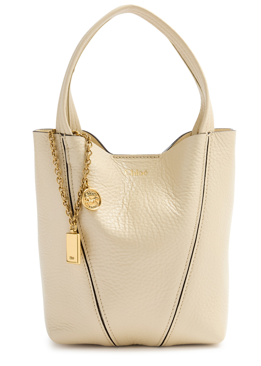 Info & Care Chloe grained leather tote Two top handle straps, detachable adjustable cross-body strap, designer stamp, detachable designer hanging tag, clasp-fastening ring; Concealed magnetic press-stud fastening at open top Size & Fit Width: 9 inches/ 23cm Height: 7.5 inches/ 19cm Depth: 3.5 inches/ 9cm Top handle;strap drop: 4.5 inches/ 11.5cm Min. shoulder strap drop: 18.5 inches/ 47cm Max. shoulder strap drop:; 22 inches/ 56cm