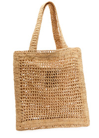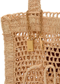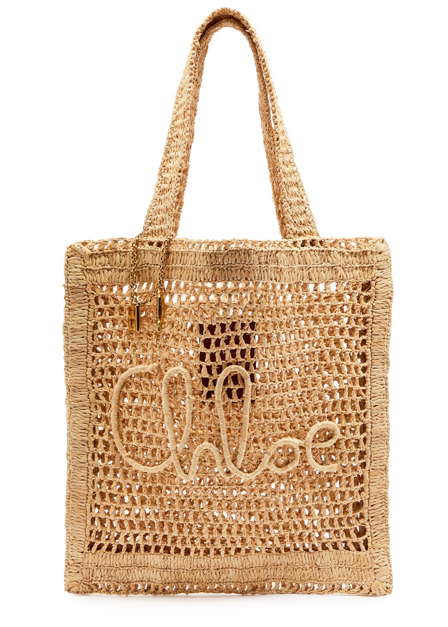 Info & Care Handmade; Chloe raffia tote Two shoulder straps, detachable;banana charm and designer hanging tag on chain, open weave, woven designer applique, internal designer plaque, two internal compartments Open top Size & Fit Width: 13.5 inches/ 34cm Height: 14.5 inches/ 37cm Depth: 1 inch/ 2.5cm Shoulder strap drop: 10.5 inches/ 27cm