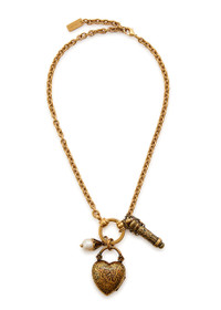 Info & Care Chloe brass necklace Logo-engraved heart locket, vial motif and faux pearl charms, textured and floral-engraved details, designer tag Adjustable lobster-clasp fastening Presented in a designer-stamped box with a pouch Size & Fit Length: 40cm Locket dimensions: 2.7cm x 3cm