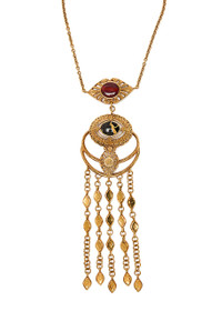 Info & Care Chloe metal necklace Textured sculpted design, red jasper and marble embellishments, fringed chain trim with charm details, designer tag Adjustable lobster-fastening; Presented in a designer-stamped box Size & Fit Length: 40cm-47cm Pendant dimensions: 6cm x 17cm