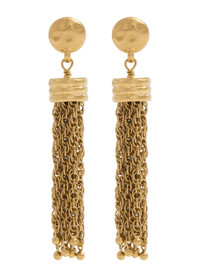 Info & Care Chloe metal drop earrings Hammered stud, tassel chain pendant Post-fastening for pierced ears Presented in a designer-stamped box Please note, we are unable to refund or exchange pierced earrings Size & Fit Drop: 6.5cm