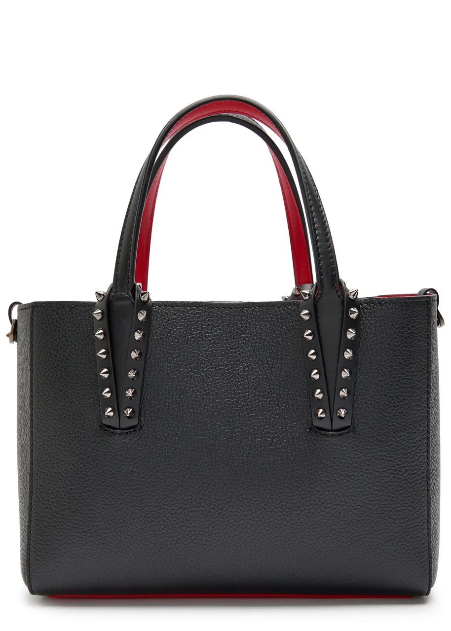 Info & Care Christian Louboutin grained leather tote; Two top handles, detachable adjustable shoulder strap, spike embellishments, signature logo-debossed rubberised base, signature red lining Lobster clasp fastening at top; Size & Fit Width: 9 inches/ 23cm Height: 7 inches/ 18cm Depth: 4 inches/ 10cm Top handle drop: 5 inches/ 13cm Min. shoulder strap drop: 14 inches/ 35.5cm Max. shoulder strap drop: 24 inches/ 61cm