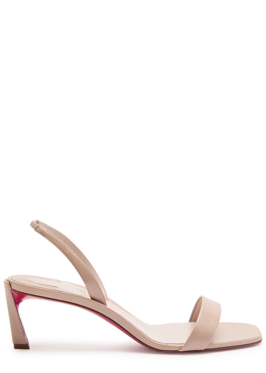 Info & Care Christian Louboutin leather slingback sandals Sculpted heel measures approximately 2.5 inches/ 55mm Partially elasticated slingback strap, signature red sole, open square toe; Slip-on Please note; we ask that all Christian Louboutin shoes be tried on carpeted flooring. Damage to the signature red sole may make them unsuitable to return. The red lacquer of the soles will wear with use. This is not a manufacturing error and is a result of normal wear and tear. Please consult a specialist in leather care for specific advice. We recommend keeping the leather clean and dry using a soft cloth and always protect from rain and moisture. Avoid contact with abrasive surfaces. Always store away from direct light and heat and in the dust bags provided. Size & Fit Only available in full sizes, go up to the nearest whole size if you take a half size;