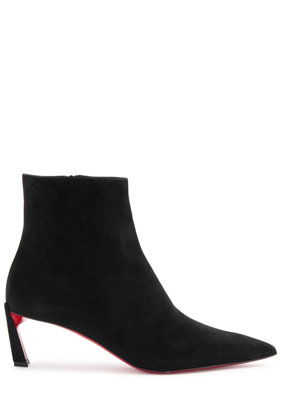 Info & Care Christian Louboutin suede ankle boots Heel measures approximately 2 inches/ 55mm; Signature red sole, pointed toe; Zip fastening at side; Please note; we ask that all Christian Louboutin shoes be tried on carpeted flooring. Damage to the signature red sole may make them unsuitable to return. The red lacquer of the soles will wear with use. This is not a manufacturing error and is a result of normal wear and tear. Please consult a specialist in leather care for specific advice. We recommend keeping the leather clean and dry using a soft cloth and always protect from rain and moisture. Avoid contact with abrasive surfaces. Always store away from direct light and heat and in the dust bags provided. Size & Fit Only available in full sizes, go up to the nearest whole size if you take a half size;