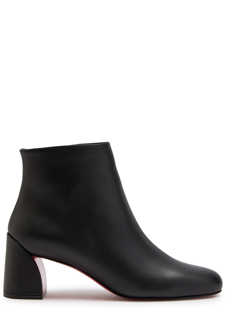 Info & Care Christian Louboutin leather ankle boots Heel measures approximately 2.25 inches/ 55mm; Signature red sole, almond toe; Pull-on; Please note, we ask that all Christian Louboutin shoes be tried on carpeted flooring. Damage to the signature red sole may make them unsuitable to return. The red lacquer of the soles will wear with use. This is not a manufacturing error and is a result of normal wear and tear. Please consult a specialist in leather care for specific advice. We recommend keeping the leather clean and dry using a soft cloth and always protect from rain and moisture. Avoid contact with abrasive surfaces. Always store away from direct light and heat and in the dust bags provided. Size & Fit Only available in full sizes, go up to the nearest whole size if you take a half size;