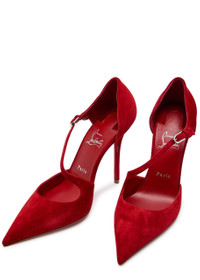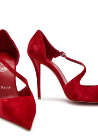 Info & Care Christian Louboutin suede pumps Heel measures approximately 4 inches/ 100mm; Signature red sole, pointed toe Buckle-fastening ankle strap Please note; we ask that all Christian Louboutin shoes be tried on carpeted flooring. Damage to the signature red sole may make them unsuitable to return. The red lacquer of the soles will wear with use. This is not a manufacturing error and is a result of normal wear and tear. Please consult a specialist in leather care for specific advice. We recommend keeping the leather clean and dry using a soft cloth and always protect from rain and moisture. Avoid contact with abrasive surfaces. Always store away from direct light and heat and in the dust bags provided. Size & Fit Narrow across the toe Only available in full sizes, go up to the nearest whole size if you take a half size