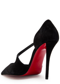 Info & Care Christian Louboutin suede pumps Heel measures approximately 4 inches/ 100mm; Signature red sole, pointed toe Buckle-fastening ankle strap Please note; we ask that all Christian Louboutin shoes be tried on carpeted flooring. Damage to the signature red sole may make them unsuitable to return. The red lacquer of the soles will wear with use. This is not a manufacturing error and is a result of normal wear and tear. Please consult a specialist in leather care for specific advice. We recommend keeping the leather clean and dry using a soft cloth and always protect from rain and moisture. Avoid contact with abrasive surfaces. Always store away from direct light and heat and in the dust bags provided. Size & Fit Narrow across the toe Only available in full sizes, go up to the nearest whole size if you take a half size