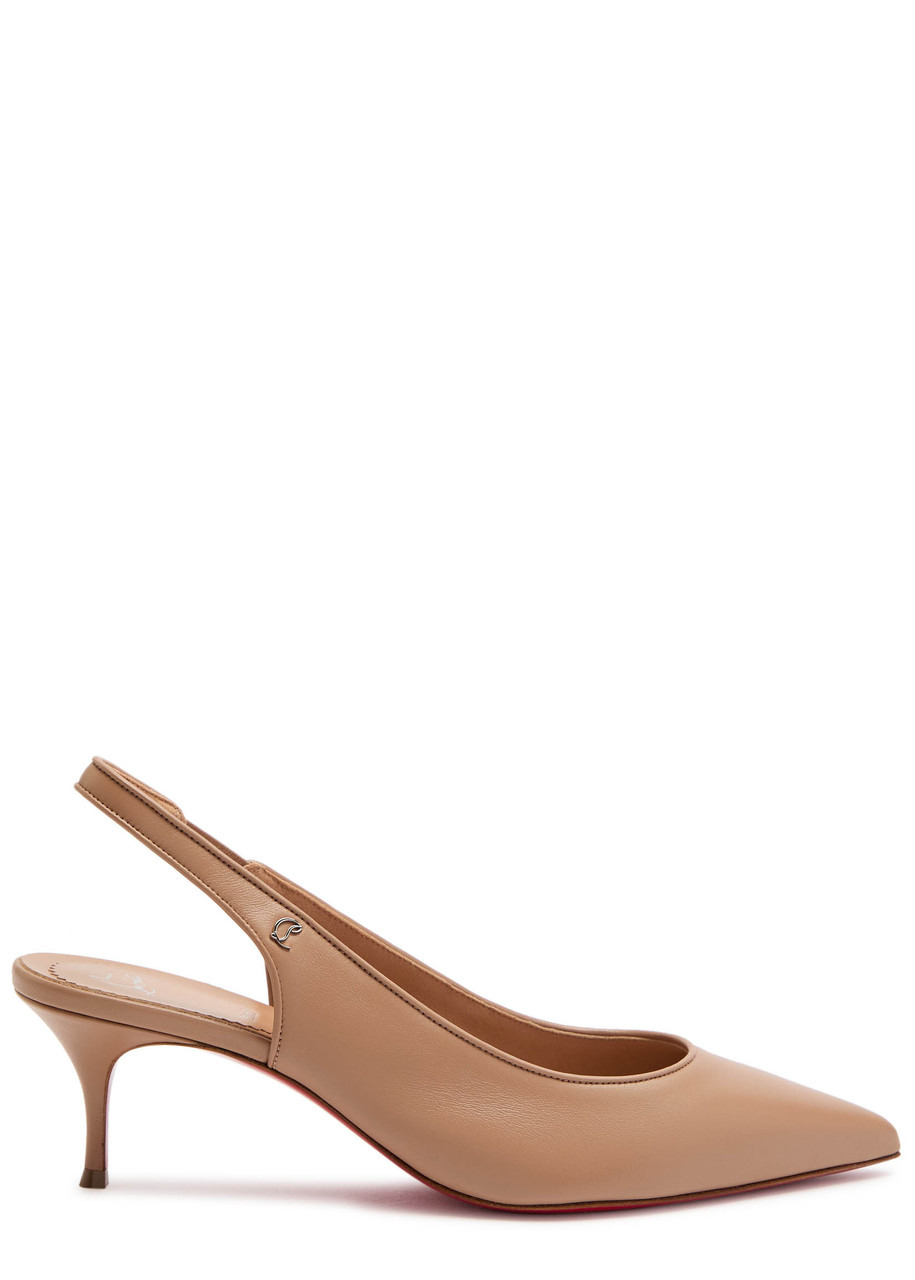 Info & Care Christian Louboutin leather slingback pumps Heel measures approximately 2 inches/ 55mm Designer logo plaque at side, signature red sole, pointed toe Slightly elasticated slingback strap Please note; we ask that all Christian Louboutin shoes be tried on carpeted flooring. Damage to the signature red sole may make them unsuitable to return. The red lacquer of the soles will wear with use. This is not a manufacturing error and is a result of normal wear and tear. Please consult a specialist in leather care for specific advice. We recommend keeping the leather clean and dry using a soft cloth and always protect from rain and moisture. Avoid contact with abrasive surfaces. Always store away from direct light and heat and in the dust bags provided. Size & Fit Only available in full sizes, go up to the nearest whole size if you take a half size;