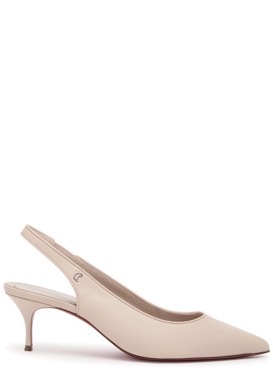 Info & Care Christian Louboutin leather slingback pumps Heel measures approximately 2 inches/ 55mm Designer logo plaque at side, signature red sole, pointed toe Slightly elasticated slingback strap Please note; we ask that all Christian Louboutin shoes be tried on carpeted flooring. Damage to the signature red sole may make them unsuitable to return. The red lacquer of the soles will wear with use. This is not a manufacturing error and is a result of normal wear and tear. Please consult a specialist in leather care for specific advice. We recommend keeping the leather clean and dry using a soft cloth and always protect from rain and moisture. Avoid contact with abrasive surfaces. Always store away from direct light and heat and in the dust bags provided. Size & Fit Only available in full sizes, go up to the nearest whole size if you take a half size;