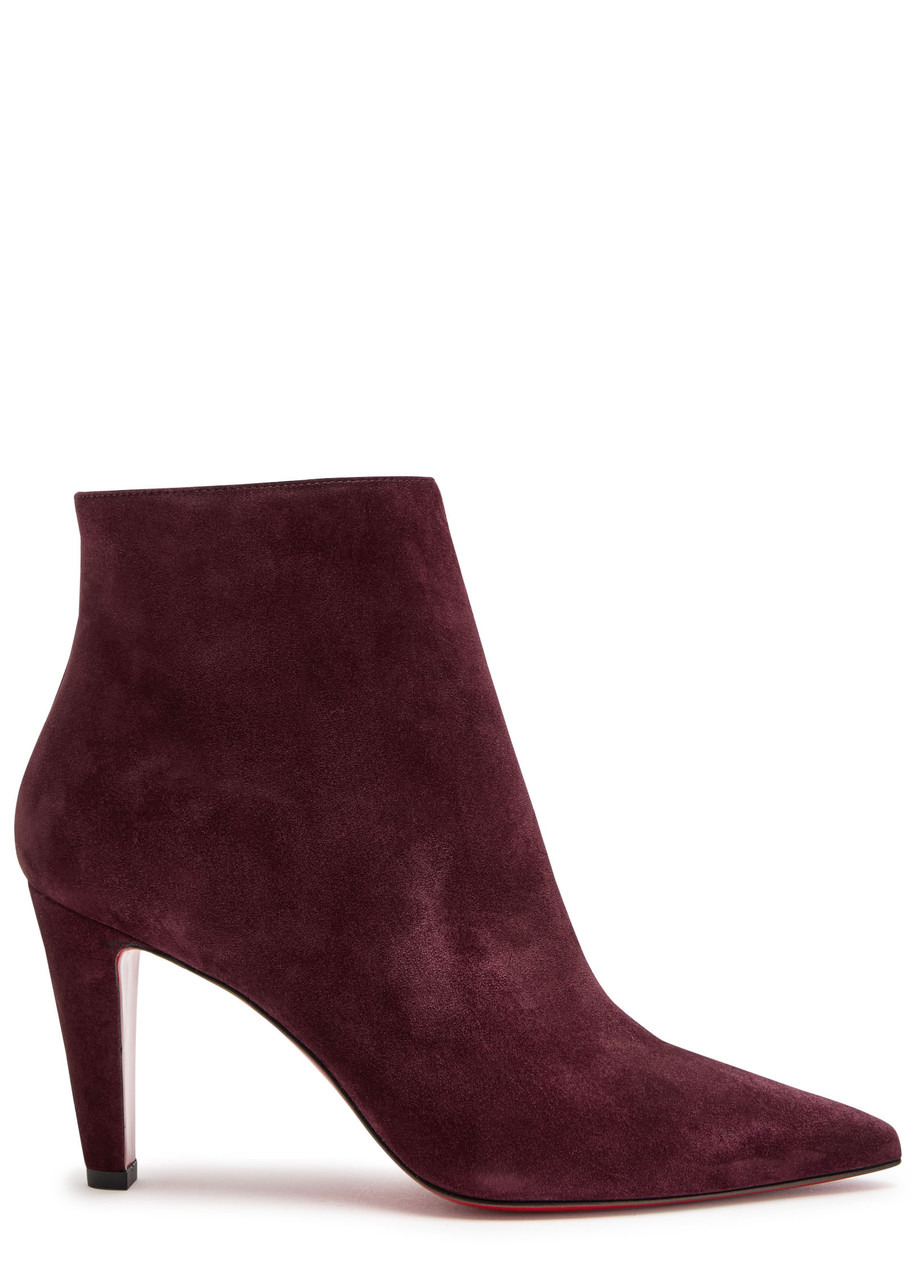 Info & Care Christian Louboutin suede ankle boots Heel measures approximately 3.5 inches/ 85mm; Signature red sole, pointed toe; Pull-on; Please note, we ask that all Christian Louboutin shoes be tried on carpeted flooring. Damage to the signature red sole may make them unsuitable to return. The red lacquer of the soles will wear with use. This is not a manufacturing error and is a result of normal wear and tear. Please consult a specialist in leather care for specific advice. We recommend keeping the leather clean and dry using a soft cloth and always protect from rain and moisture. Avoid contact with abrasive surfaces. Always store away from direct light and heat and in the dust bags provided. Size & Fit Narrow across the toe Only available in full sizes, go up to the nearest whole size if you take a half size;