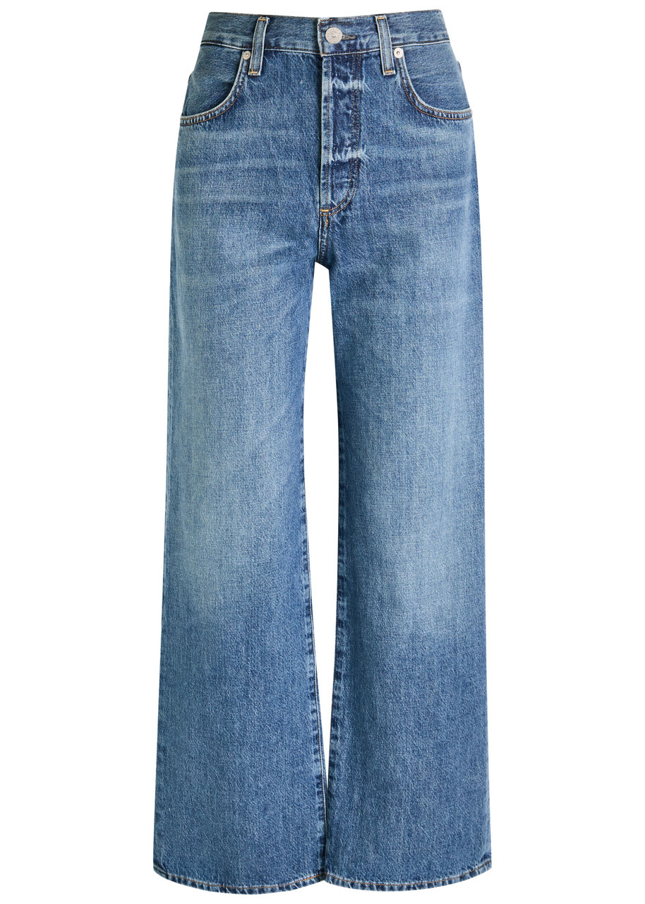 Info & Care Citizens of Humanity denim jeans High-rise fit, wide-leg cut, belt loops, four pockets, designer plaques, whiskered, faded finish Partially concealed button fastenings at front 100% cotton Machine wash cold inside out to avoid colour transfer Size & Fit Front rise: 11 inches/ 28cm Inside leg length: 33 inches/ 84cm Midweight Model is 5'10"/ 178cm and wears a size W27