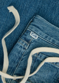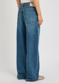 Info & Care Citizens of Humanity denim jeans Low-rise fit, wide-leg cut, drawstring waistband, belt loops, five pockets, press-stud embellishments, designer plaque at front and back, whiskered, faded finish Partially concealed button fastenings at front Designer wash:;Atlantis 100% regenerative cotton Machine wash cold inside out to avoid colour transfer Size & Fit Front rise: 12 inches/ 30.5cm Inside leg length: 31 inches/ 79cm Midweight Model is 5'9"/ 175cm and wears a size W27