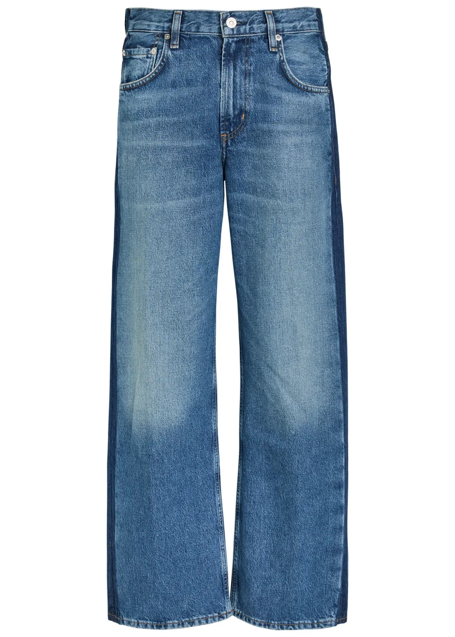 Info & Care Citizens Of Humanity denim jeans Low-rise fit, relaxed straight-leg cut, belt loops, five pockets, designer plaque at front and back, slightly distressed trims, whiskered and washed finish Partially concealed zip and button fastening at front Designer wash:;Liro 100% regenerative cotton Machine wash cold inside out to avoid colour transfer Size & Fit Front rise: 9.5 inches/ 24cm Inside leg length: 30 inches/ 76.5cm Midweight Model is 5'10"/ 178cm and wears a size W27