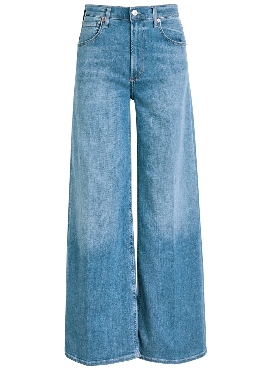 Info & Care Citizens Of Humanity stretch-denim jeans High-rise fit, wide-leg cut, belt loops, five pockets, press-stud embellishments, designer plaque at front and back, designer-engraved hardware, whiskered, faded finish Partially concealed button and zip fastening at front Designer wash:;Bhodi 93% cotton, 6% polyester, 1% elastane Machine wash cold inside out to avoid colour transfer Size & Fit Front rise: 11 inches/ 28cm Inside leg length: 33 inches/ 84cm Midweight Model is 5'9"/ 175cm and wears a size W27