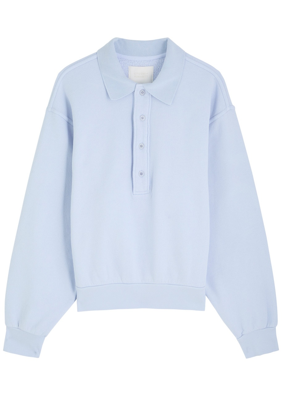 Info & Care Citizens Of Humanity;cotton-blend;sweatshirt Button-fastening neck, dropped shoulders with piped trims, balloon sleeves, designer tag at side, balloon hem, ribbed Slips on 72% organic cotton,;28% polyester Machine wash Size & Fit Length shoulder to hem: 23 inches/ 58.5cm Midweight Relaxed, boxy fit Model is 5'9"/ 175cm and wears a size small