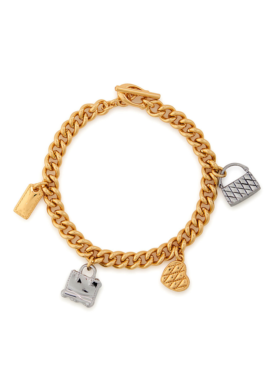 Info & Care Coach metal;bracelet Multi-charm design, heart and bag designer motifs, designer tag, logo detail at fastening, subtle crystal embellishments, textured details, designer engraved; T-bar;fastening Presented in a designer-stamped box with a pouch Size & Fit Length: 17cm